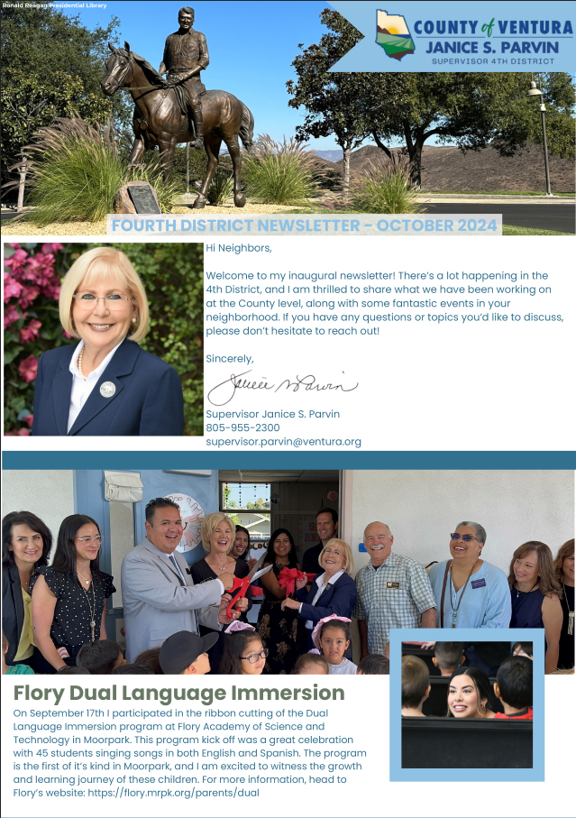 Subscribe to receive District 4 County Supervisor Janice S. Parvin’s Newsletters using the form below. You will receive an e-mail notification with a link to confirm your subscription. Without this confirmation, you will not receive any messages from the subscription to the District 4 Newsletter.